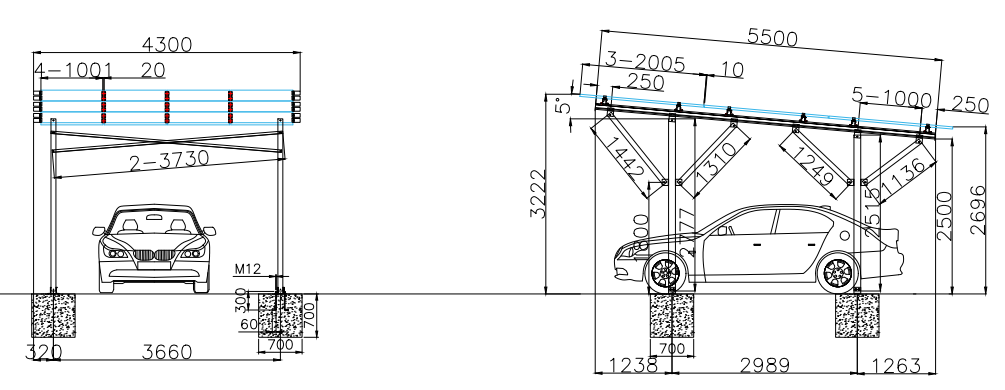 3KN/m²An aluminum alloy carport is a protective shelter designed primarily for vehicles, combining a durable frame made of aluminum alloy with a roofing typically made of materials like polycarbonate (PC) panels. It serves as an excellent solution for protecting cars from various weather elements while offering longevity and aesthetic appeal.